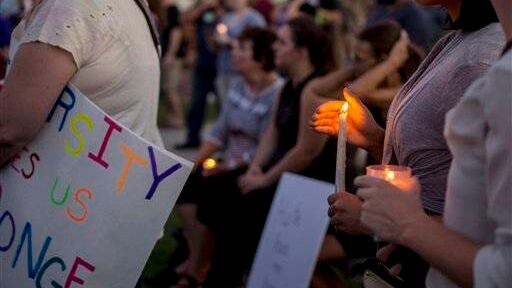 Una multitud se reunió para una vigilia en Charlottesville, Virginia, en la calle donde había muerto una persona el día anterior cuando un coche embistió contra una protesta pacífica contraria a los nacionalistas blancos.