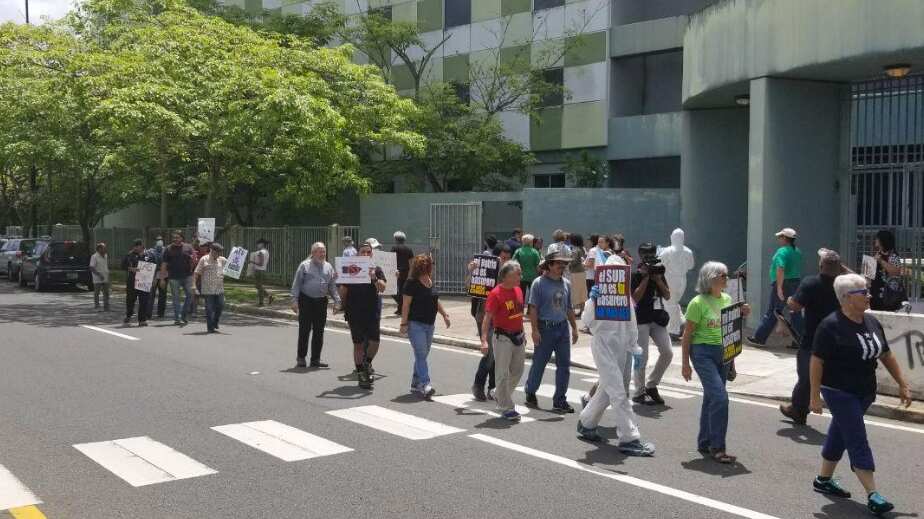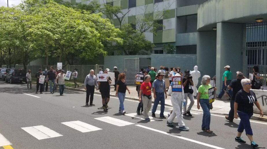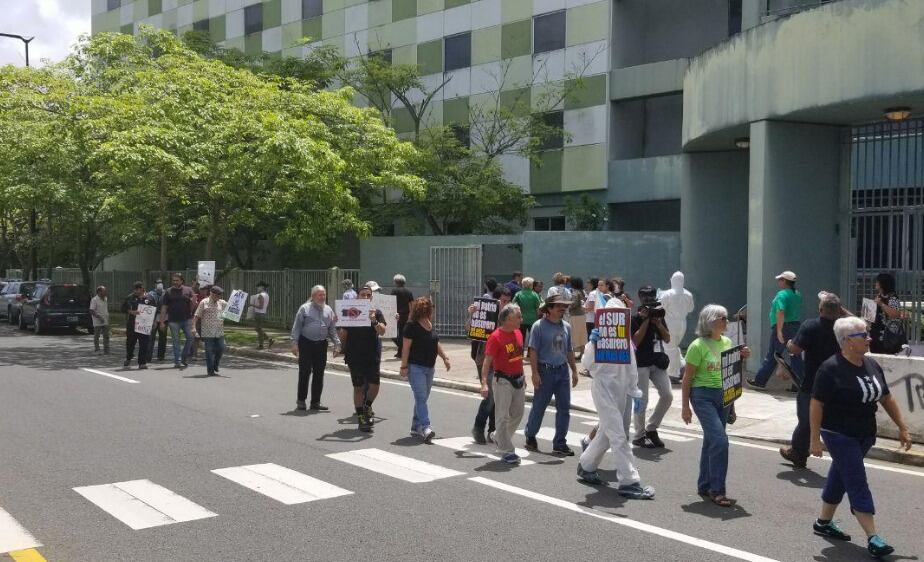 Decenas de manifestantes protestaron el martes frente a la sede de la Junta de Calidad Ambiental (JCA), para exigirle a su presidenta Tania Vázquez Rivera que atienda el problema ambiental que a juicio de los protestantes crean las cenizas de carbón que produce en Guayama, Applied Energy Systems (AES).