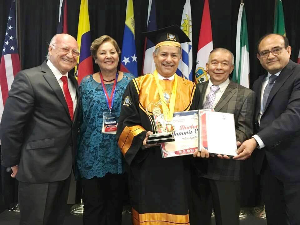 El alcalde de Yabucoa, Rafael Surillo Ruiz, recibió ayer, martes el grado de doctor Honoris Causa de parte del consejo directivo de la honorable Academia Mundial de la Educación y la Universidad Nacional de Oriente (UNO), en Bolivia, por su “ejemplar liderazgo de comprobada honestidad, don de servicio e impecable y fructífera gestión pedagógica”.