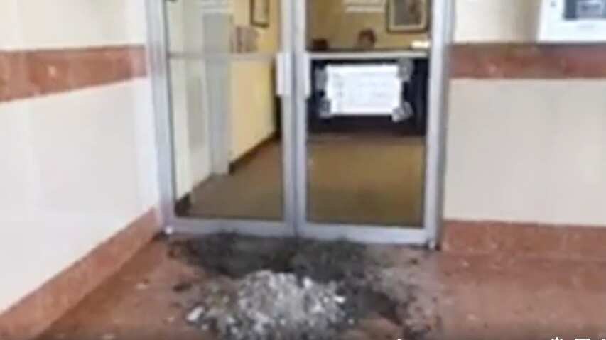 Se trató del colectivo Jornada: Se acabaron las Promesas, quienes también realizaron un corto piquete en el vestíbulo del edificio en contra del depósito de cenizas en el vertedero de Peñuelas por parte de la compañía Energy Answers.