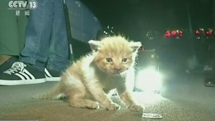 El pequeño felino fue sacado desde el interior de un vehículo de lujo sin padecer de ningún daño. Video: Reuters.