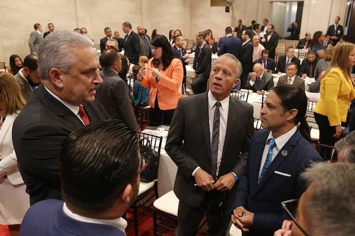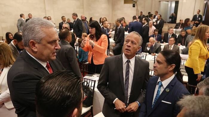 En la mesa presidencial se encuentran con Rivera Schatz el presidente de la Federación de Alcaldes, Carlos Molina, y su homólogo de la Asociación de Alcaldes, Rolando Ortiz. Tambien, la presidenta de la Comisión de Asuntos Municipales del Senado y exalcaldesa de Coamo, Margarita Nolasco Santiago y el representante José “Memo” González.