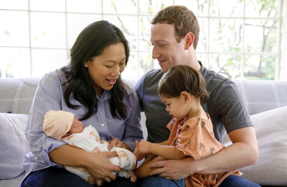 En la imagen se ve a su esposa Priscilla Chan, su primogénita, la nueva integrante de la familia August y el empresario.