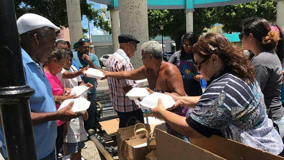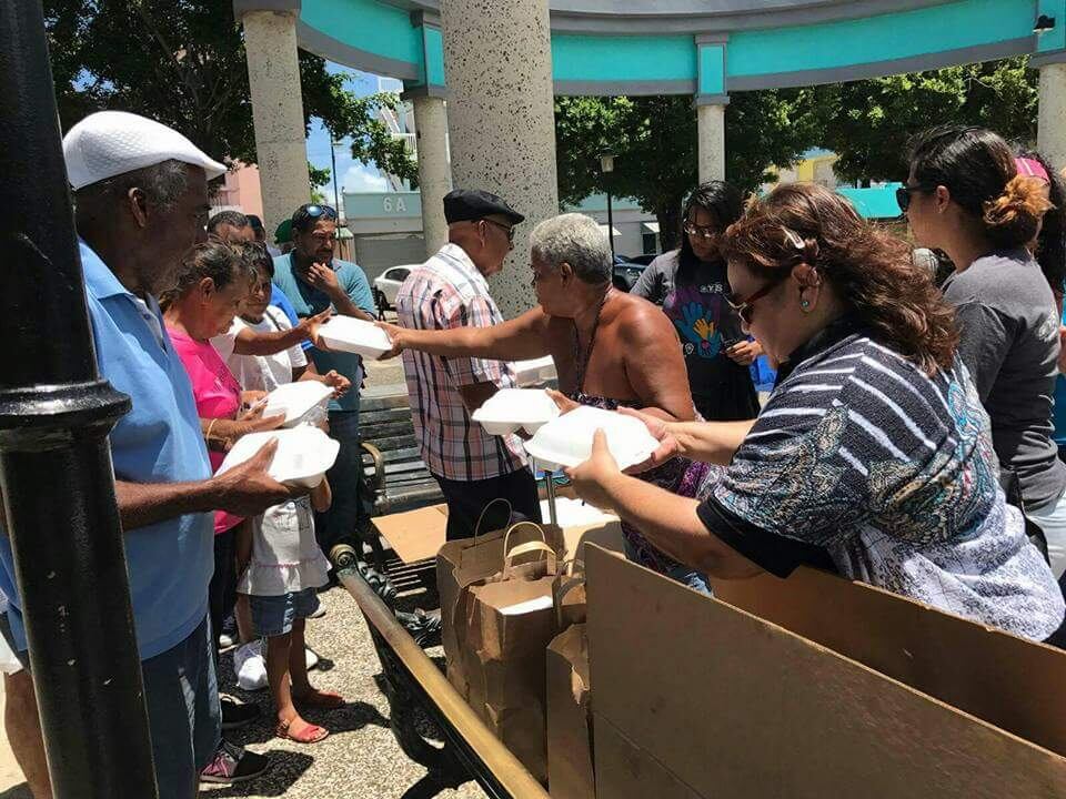 El grupo de voluntarios se reunió en la plaza pública de Cataño para repartir las mochilas que contenían alimentos, artículos de aseo personal y de primera necesidad.