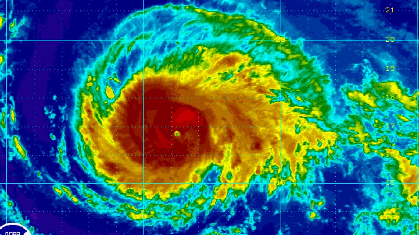 Según el informe de las 2:00 de la tarde emitido por el Centro Nacional de Huracanes (CNH), el huracán Irma está ubicada en la latitud 16.7 grados Norte y longitud 53.8 grados Oeste con vientos máximos sostenidos de 120 millas por hora (MPH) y un movimiento actual de 14 MPH hacia el oeste sudoeste.