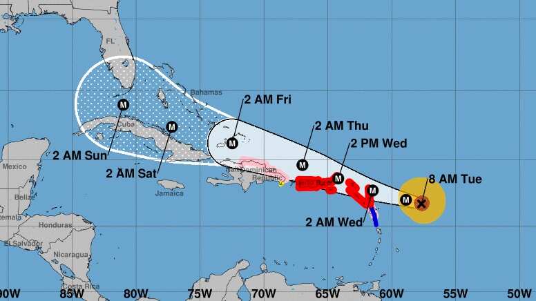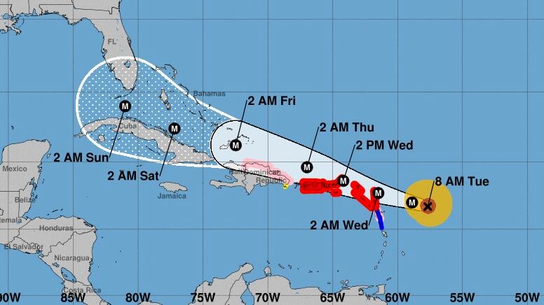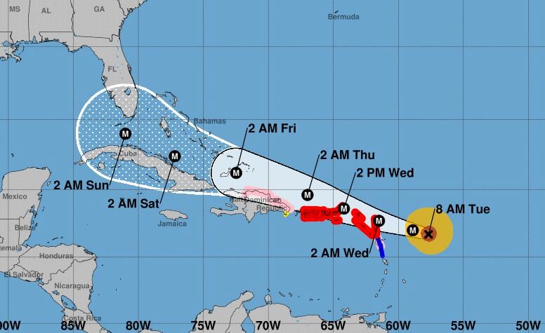 “Tuvieron que hacer un boletín especial ya que el avión encontró fuertes vientos a través del sistema. Lo encontraron en la latitud 16.7 norte, 57.7 oeste [longitud]. Wao, se está moviendo hacia el oeste a unas 14 millas por hora y tiene unos vientos de 175 millas por hora. Por lo tanto, se ha clasificado como categoría 5”, indicó el meteorólogo Ernesto Morales en una conferencia de prensa en la Agencia Estatal para el Manejo de Emergencias (Aemead).