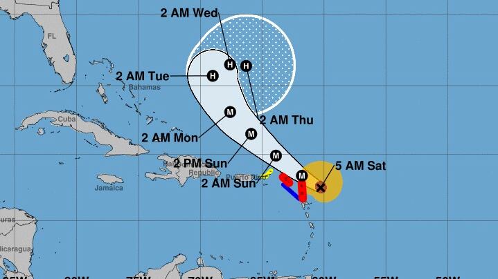 Este está alrededor 190 millas al Este de las Islas de Sotavento (Leeward). José continuará moviéndose hacia el noroeste hoy a 13 mph, pasando a 170 millas aproximadamente al Norte de San Juan temprano la mañana del domingo.