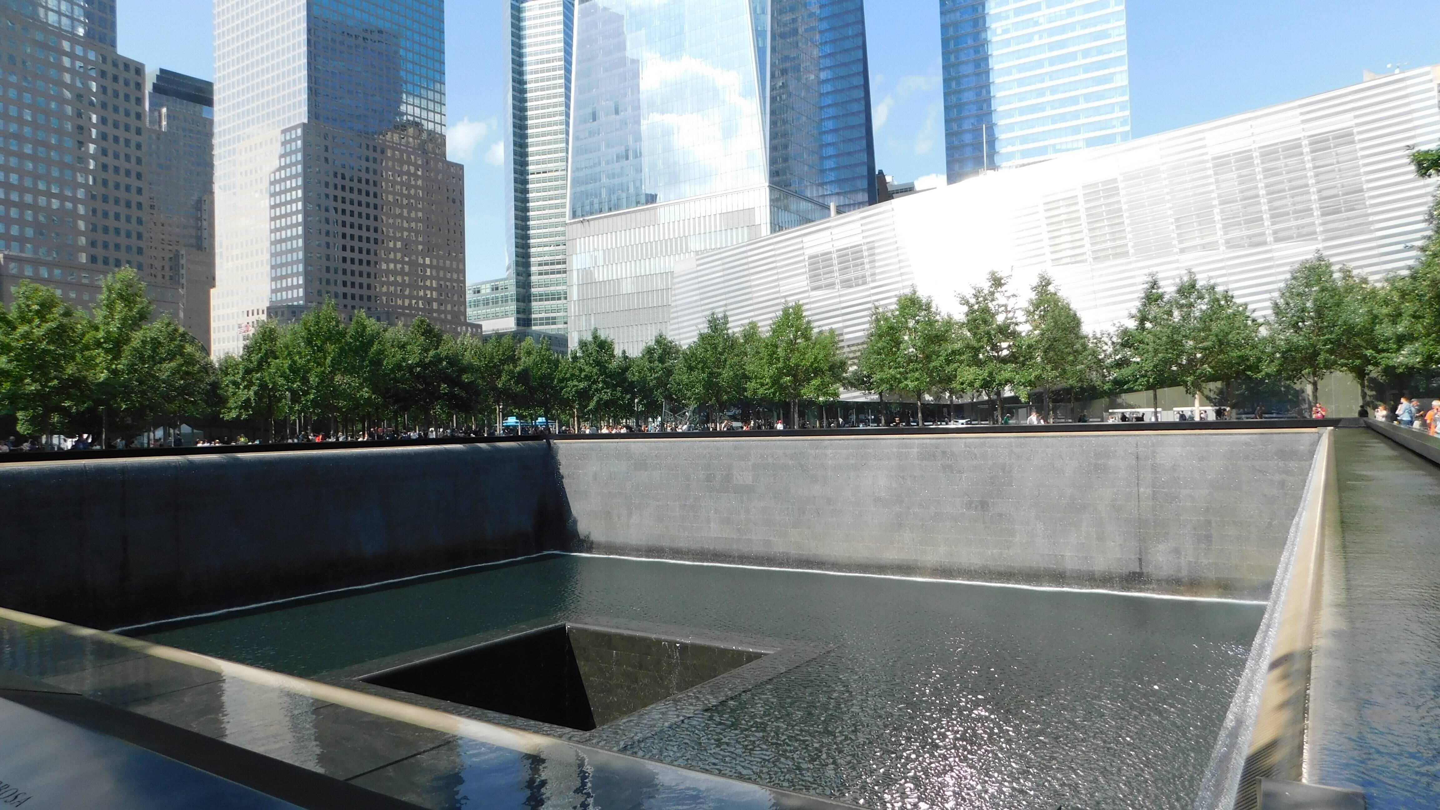 “Es muy bonito aquí”, dice Victoria Smaltz, de Indianapolis, mientras toma una foto al 9/11 Memorial la tarde del jueves, una tarde cristalina que hace difícil decir dónde termina la torre del One World Trade Center y empieza el cielo.