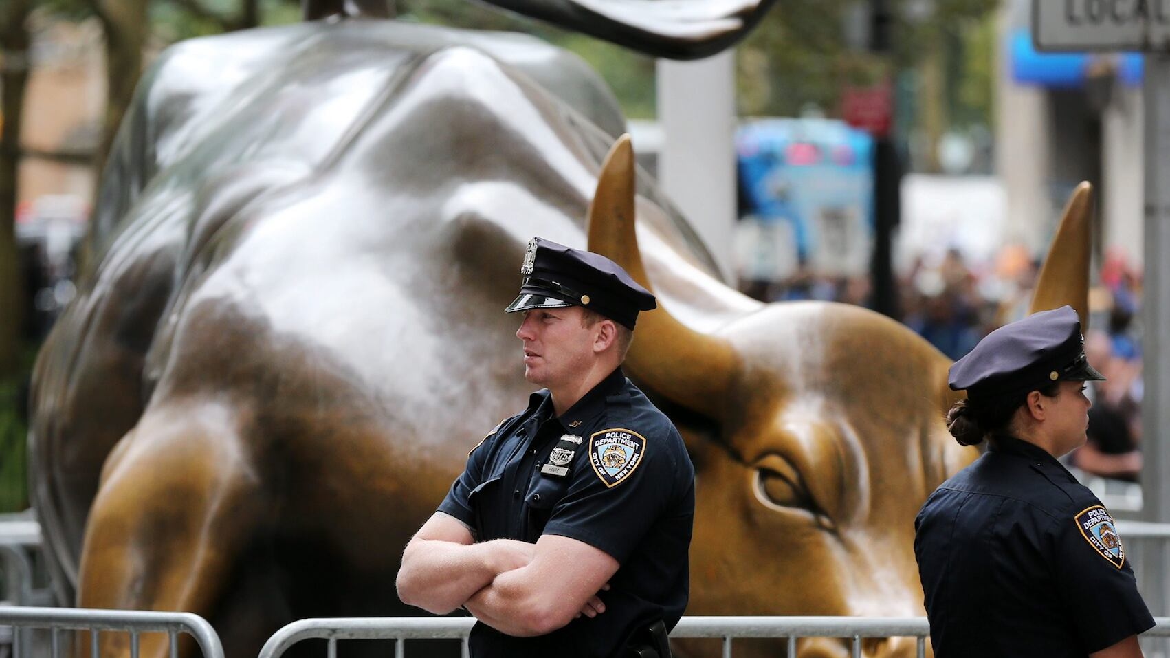Además, la estatua de la niña que desafía al toro llamada “The Fearless Girl”, instalada en la víspera del Día Internacional de la Mujer el pasado marzo, amaneció el mismo jueves cubierta con una banda azul y el mensaje “dibuja la línea azul”.