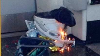 Imágenes tomadas dentro del tren mostraban un cubo blanco de plástico dentro de una bolsa térmica de supermercado. Por el borde del cubo salían llamas y lo que parecían ser cables.