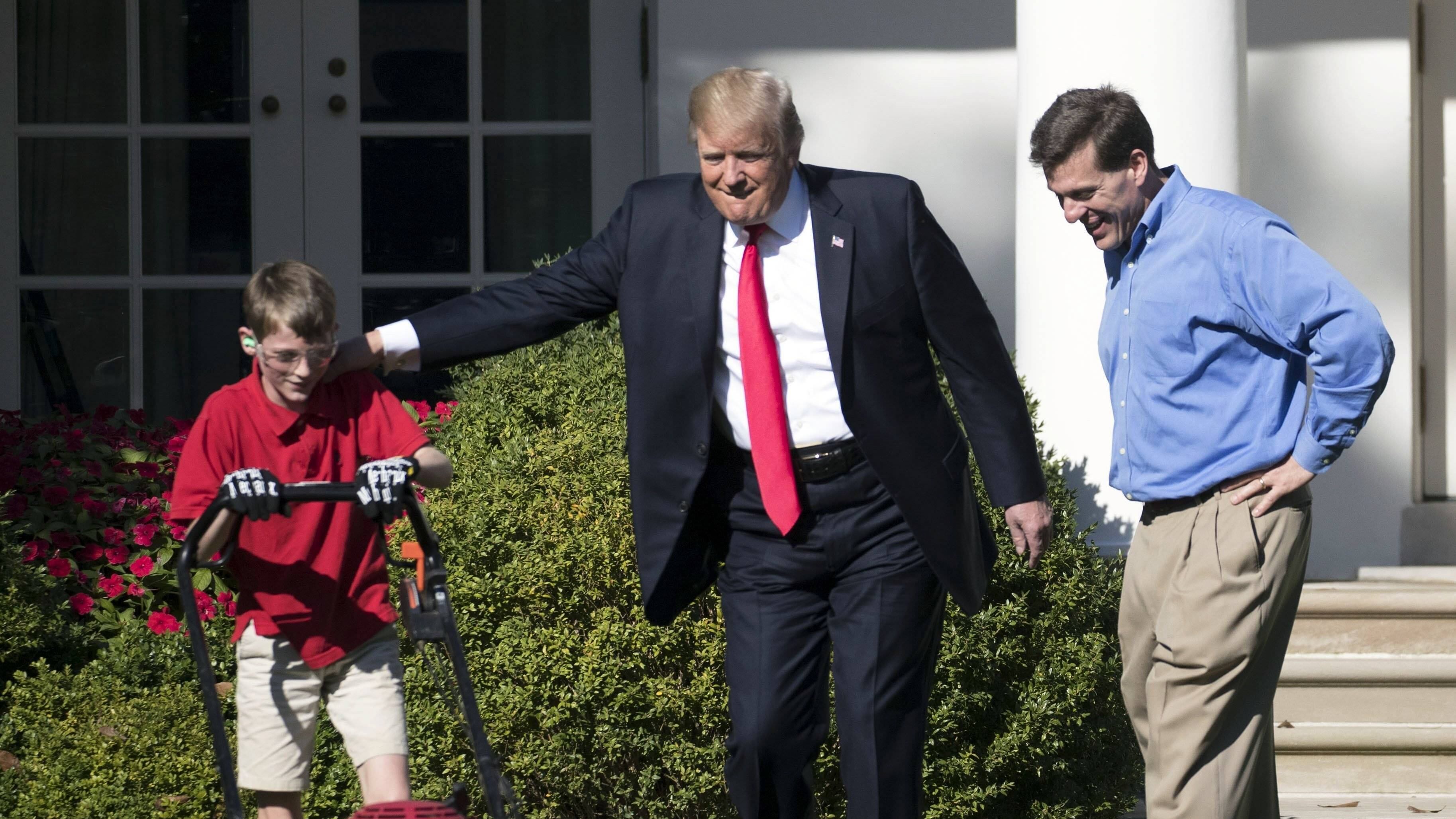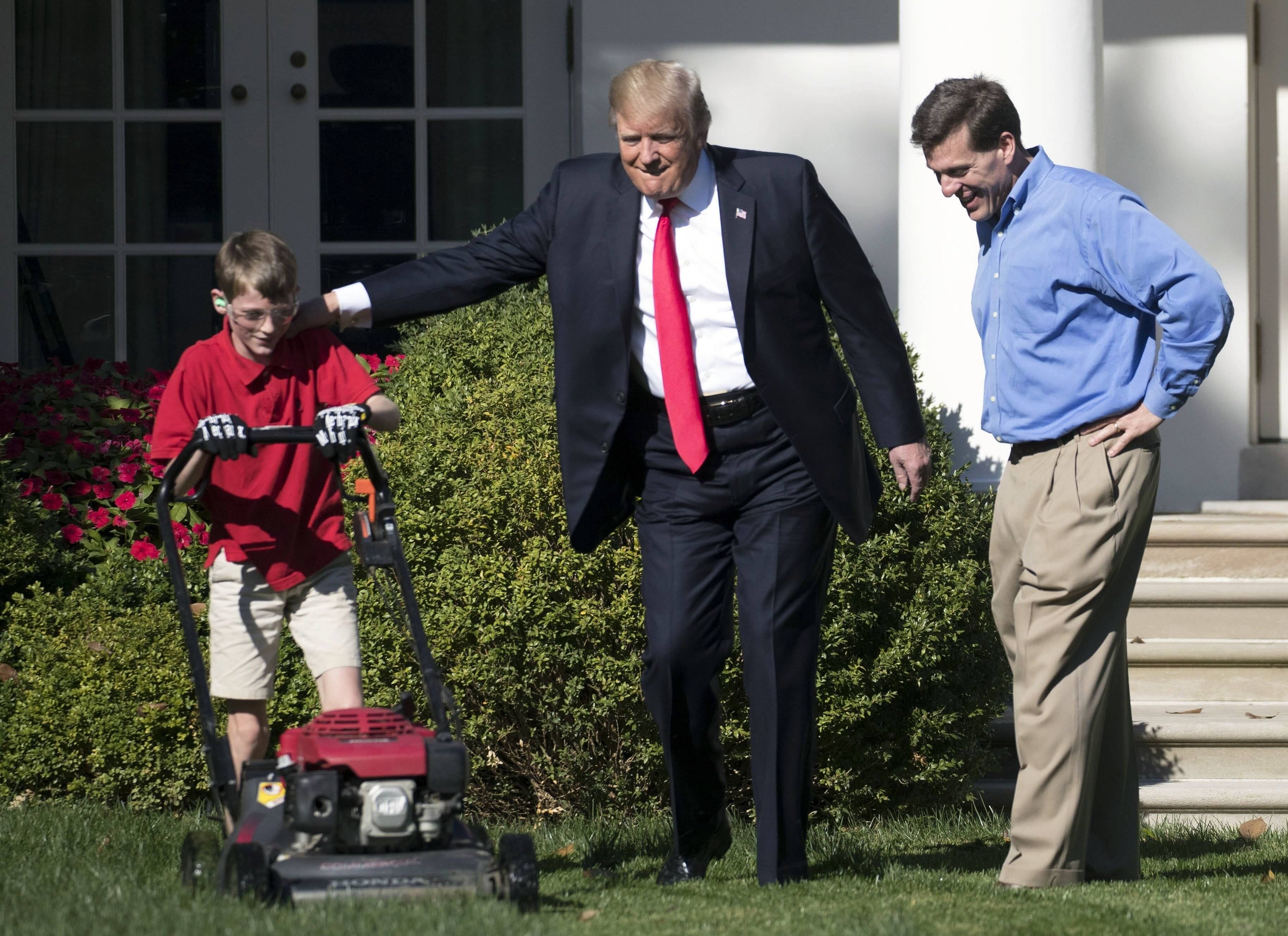 En la carta, compartida por la portavoz de la Casa Blanca, Sarah Huckabee Sanders, en una rueda de prensa, el niño se comprometía a segar la hierba “sin costo alguno”.