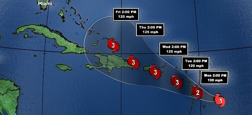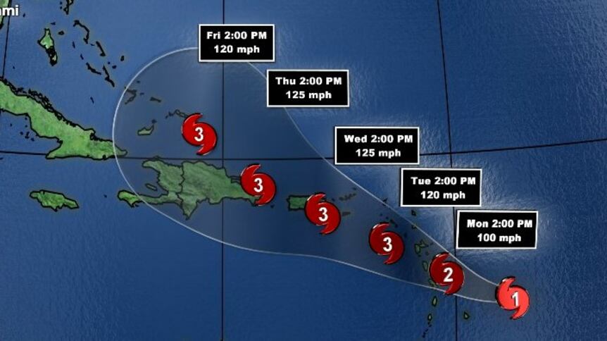 María podría afectar a Puerto Rico como un huracán categoría 3 con vientos de 125mph.