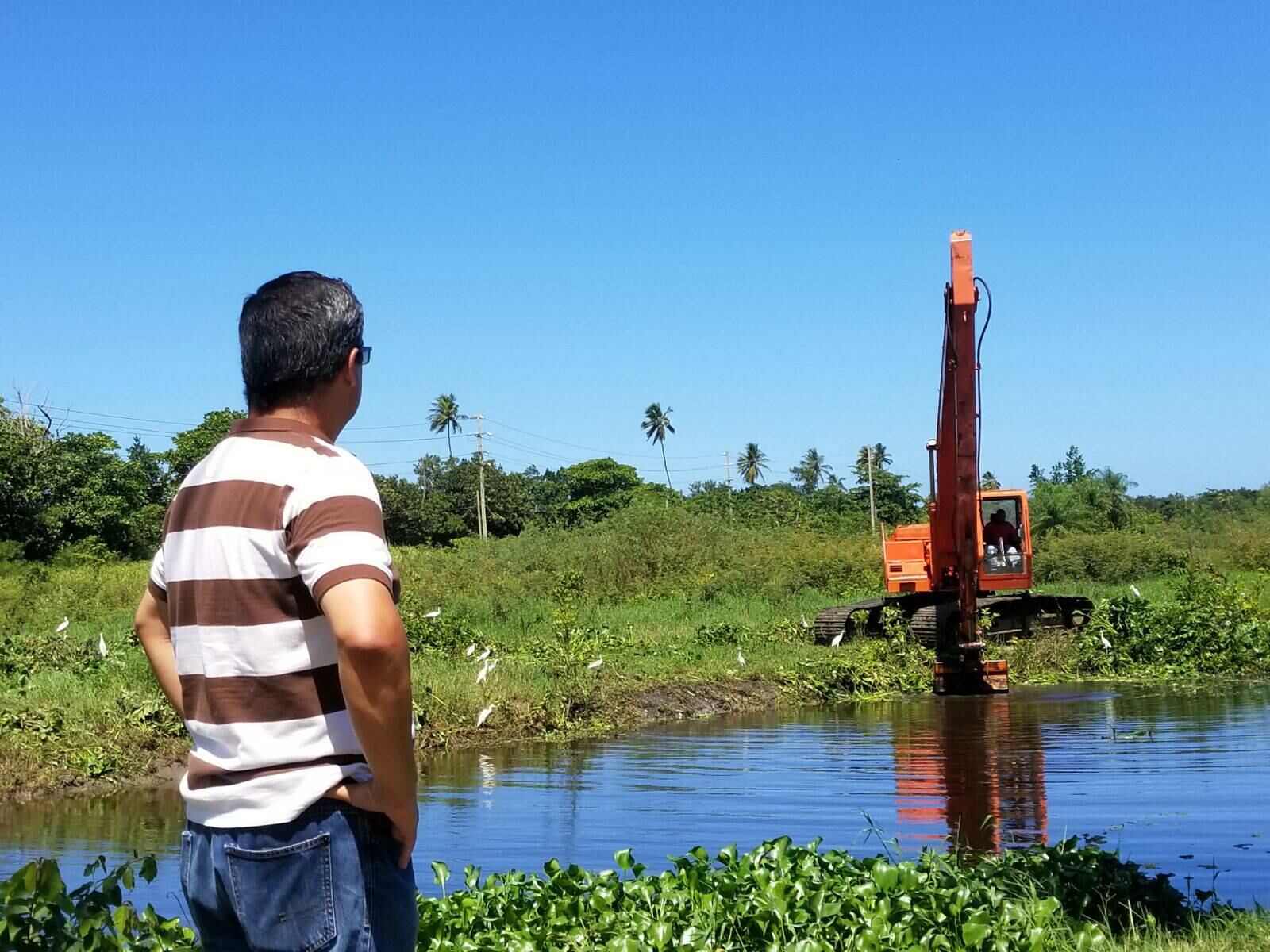 Mientras, de fondo, una excavadora Daewoo realizaba trabajos de limpieza mientras el Alcalde hablaba, sacando la maleza que abunda en este cuerpo de agua, mucha que se acumuló allí tras el paso del huracán Irma hace semana y media. Según dijo, el Departamento de Recursos Naturales y Ambientales (DRNA) envió esta máquina “a última hora” para trabajar con el caño.