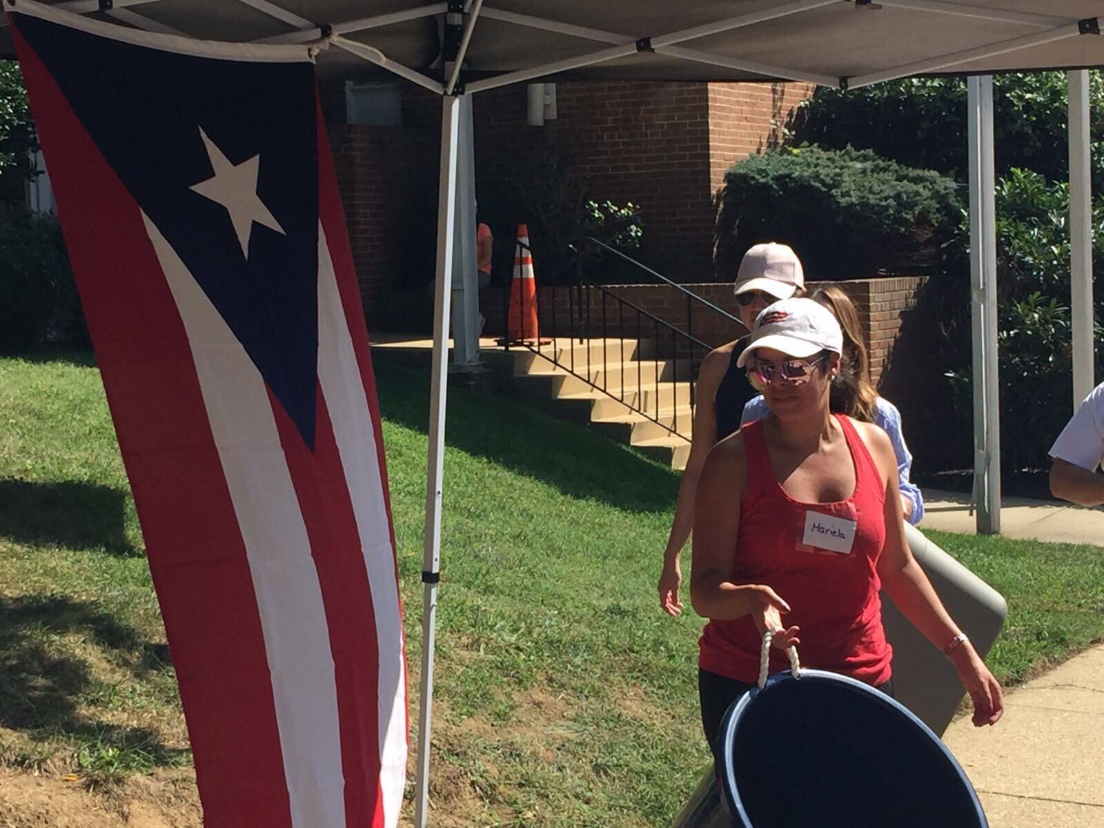 Mientras, a pocos bloques de la iglesia, en el sector de Ballston, un grupo de boricuas armaba un centro de acopio con artículos de primera necesidad, incluyendo una imponente sección de alimento para perros.