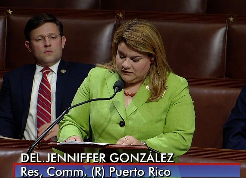 La comisionada residente, Jenniffer González Colón, habló en el pleno de la Cámara de Representantes sobre la situación de Puerto Rico a raíz del huracán María para reclamar ayuda para los 3.4 millones de ciudadanos americanos residentes en Puerto Rico.