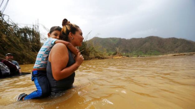 En Morovis, muchas familias se han tenido que tirar al río San Lorenzo, luego que un puente desapareciera tras el azote del huracán.