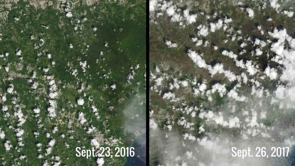 La NASA compartió unas imágenes de la deforestación de la isla, tras el paso del huracán María la semana pasada.