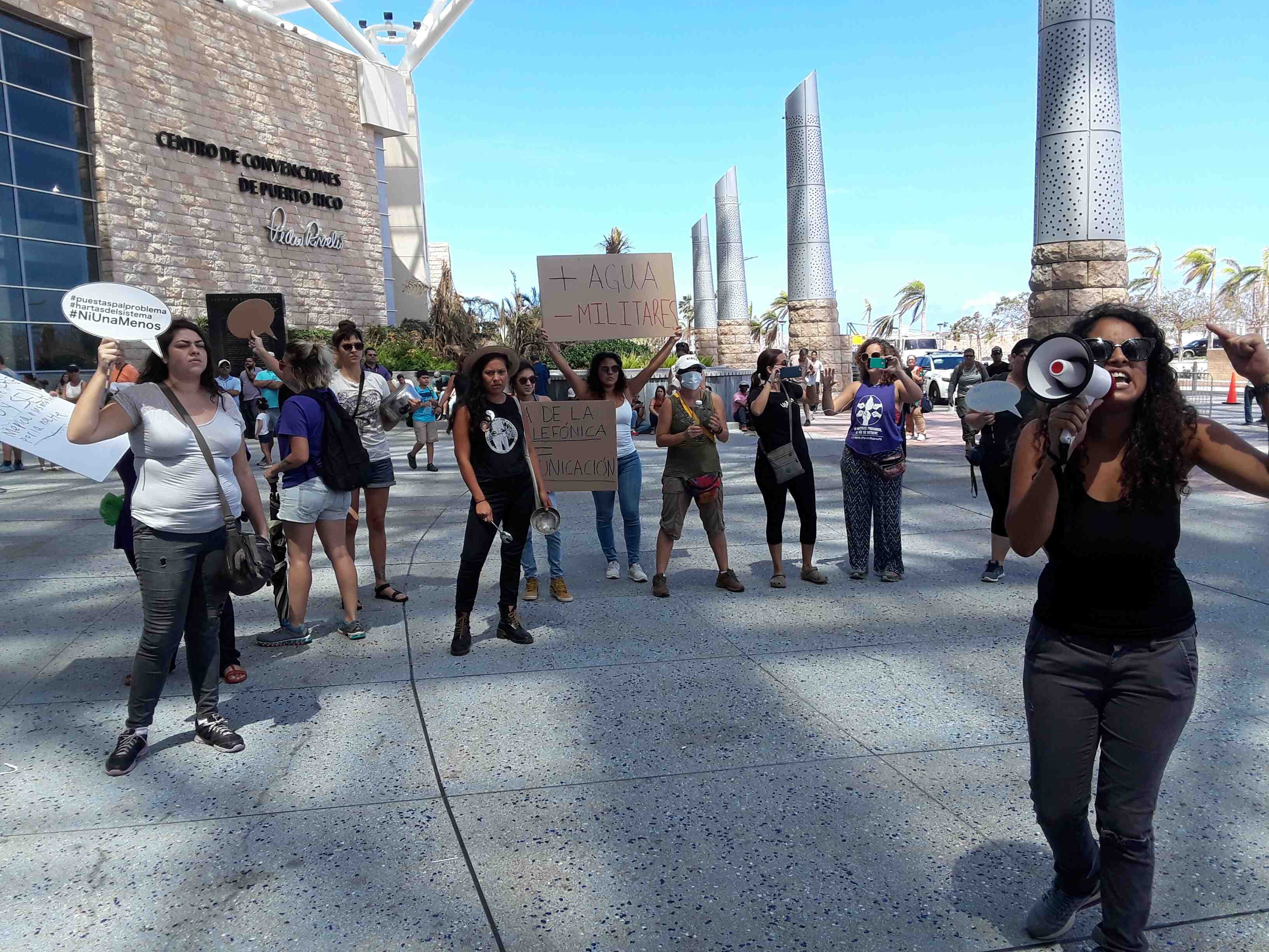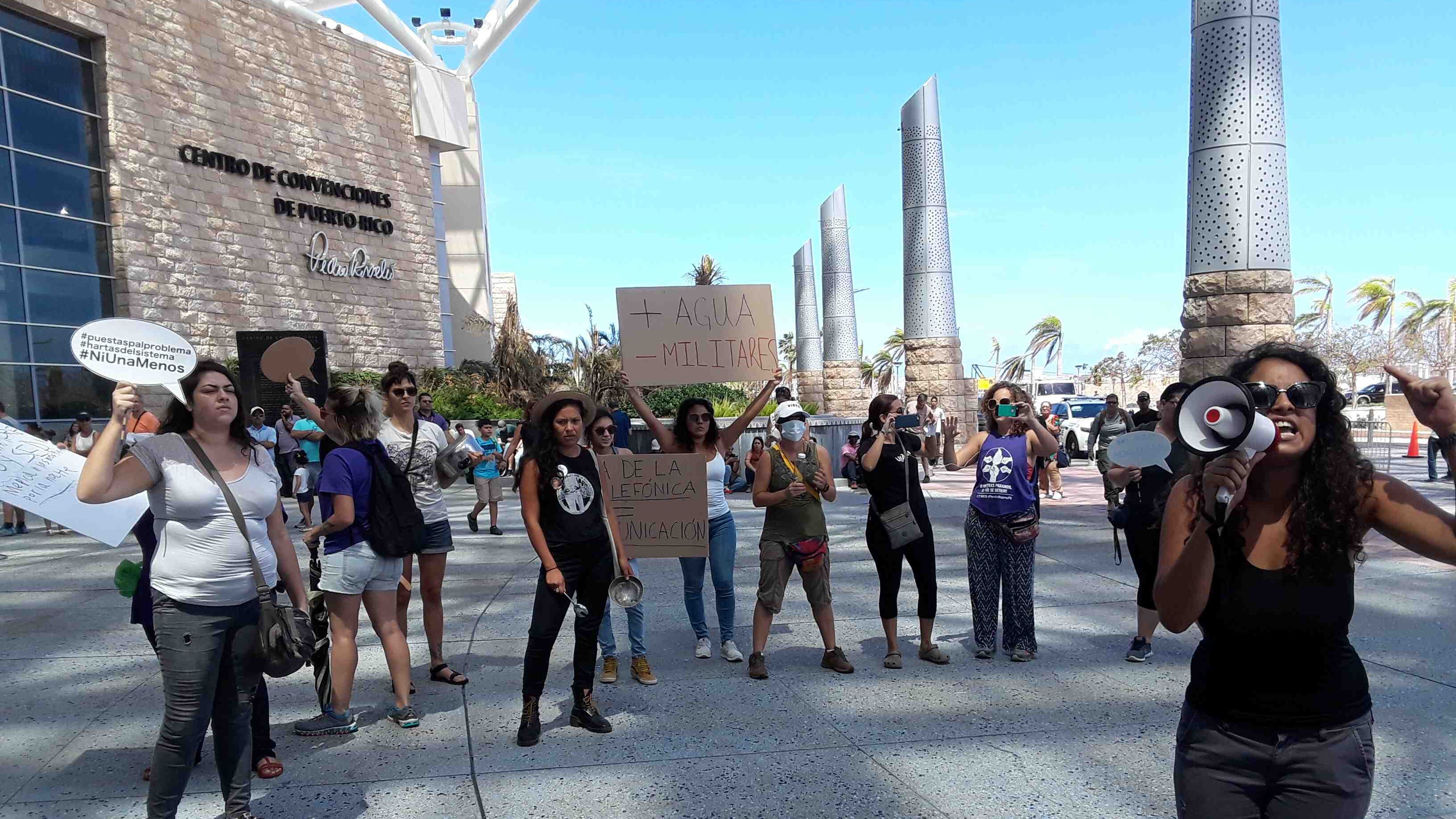 El Colectivo Feminista en Construcción, por voz de Glorimar Santiago, se quejó en el Centro de Operaciones de Emergencia (COE) de lo que entienden es la militarización de la isla.