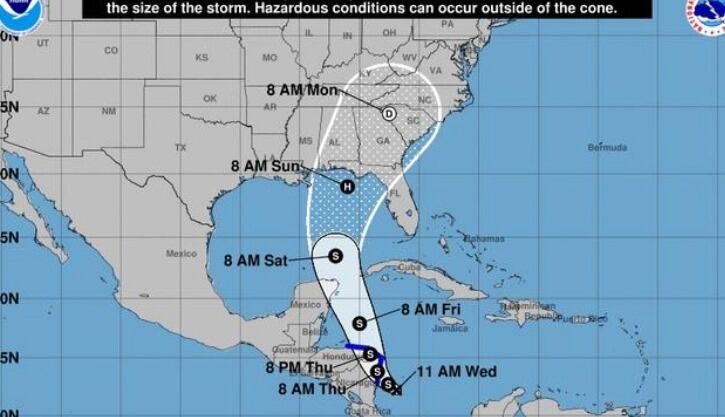 De acuerdo al último boletín, este es el sistema tropical número 16 de esta temporada de huracanes. De intensificarse el fenómeno podría llamarse Nate y afectar el noroeste de la Florida como un huracán categoría 1.