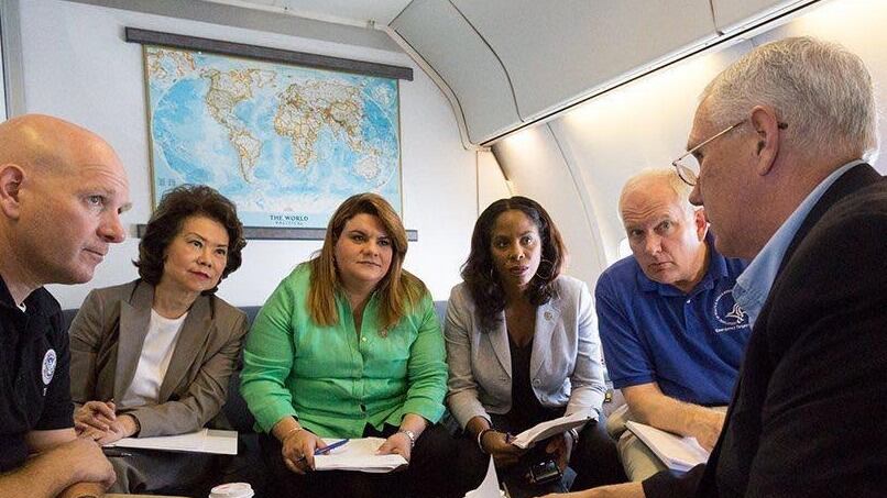 Esta mañana, la comisionada residente partió en el Air Force Two con el vicepresidente Pence, su esposa Karen, el secretario interino de Salud federal, Don Wright y la secretaria de Transportación Elaine Chao, entre otros miembros de la Rama Ejecutiva y la delegada de Islas Vírgenes, Stacey Plaskett para la isla de Santa Cruz, parte de las Islas Vírgenes.