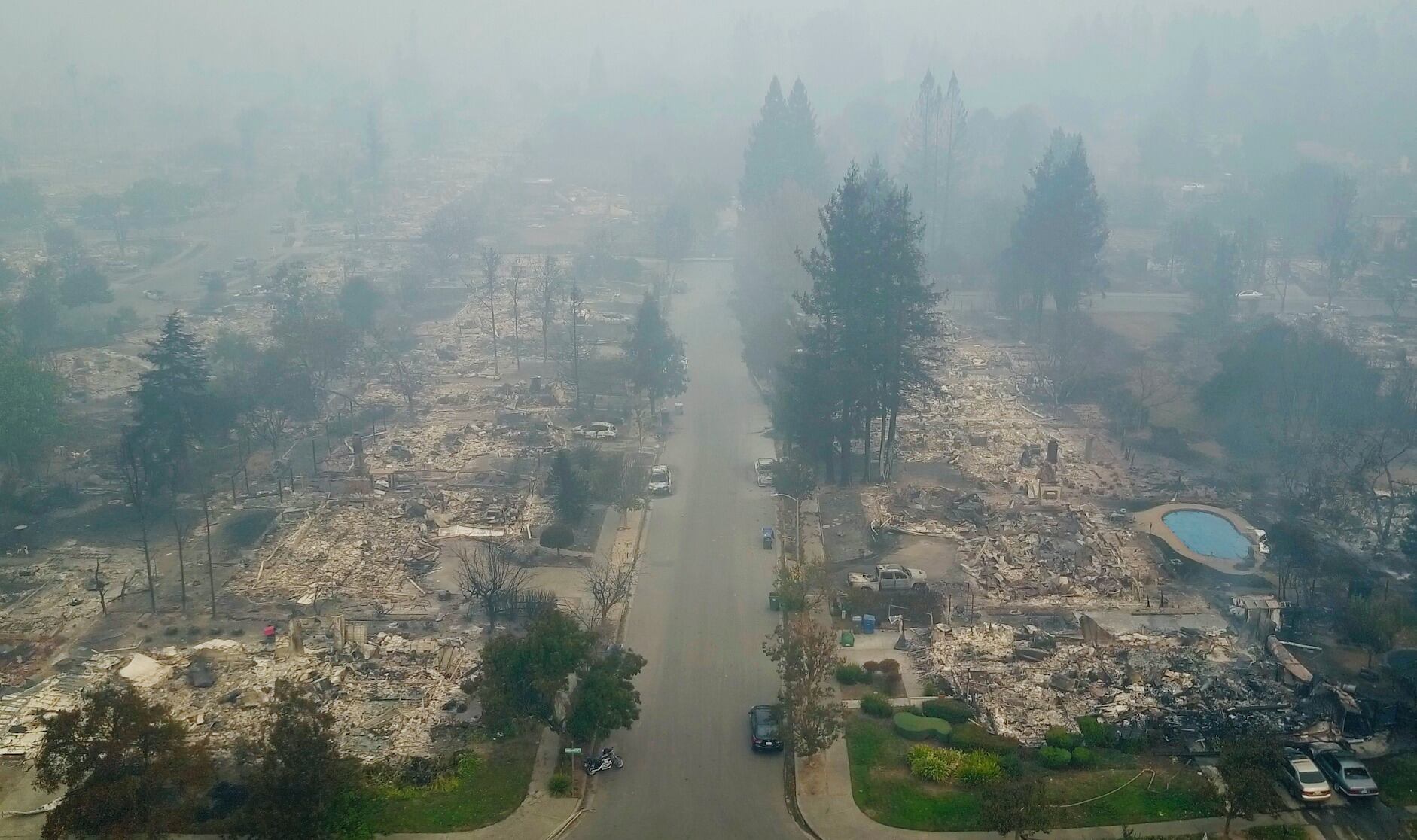 Las llamas devoraron gran parte de la zona vinícola de Napa y Sonoma y llegaron hasta la pintoresca localidad costera de Mendocino más al norte, dejando una estela de cenizas y humo. Vecindarios enteros quedaron reducidos a cenizas. Donde una vez se erguía una casa queda sólo una chamuscada chimenea, o los restos de una máquina de lavar ropa.