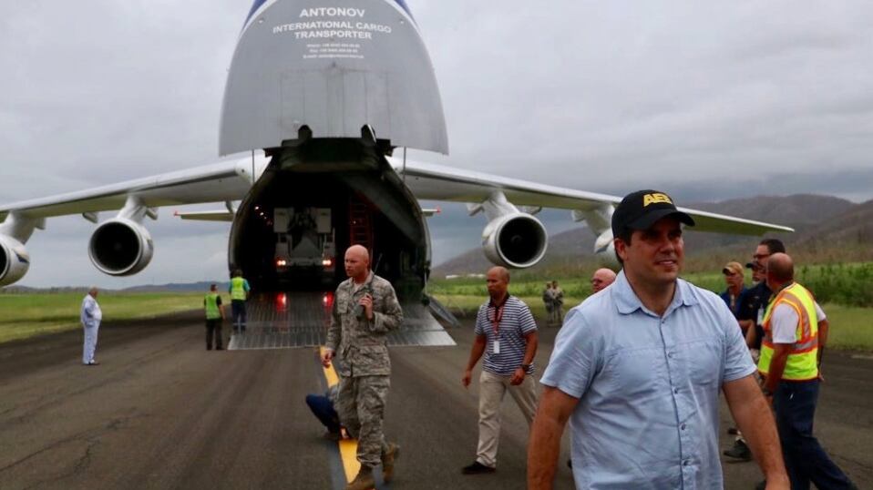 El primer ejecutivo recibió el cargamento acompañado del director ejecutivo de la Autoridad de Energía Eléctrica (AEE), Ricardo Ramos, en el Aeropuerto José Aponte de la Torre en Ceiba. El avión ucraniano Antonov AN-225 Mriya, conocido por ser el avión de transporte más grande del mundo, llega por segunda vez al aeropuerto con cinco camiones de doble canasta que se suman a dos que habían llegado anteriormente, para un total de siete. Se espera que llegue un avión adicional.