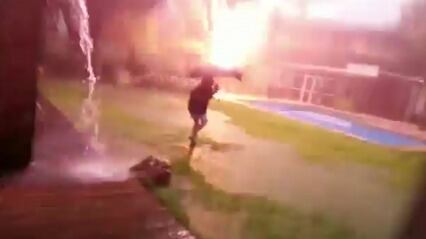 Una historia que podía haber terminado en una verdadera tragedia es la que puede contar una familia de Posadas en Argentina. La localidad era azotada por una gran tormenta eléctrica y un menor de 12 años salió al patio de su casa en medio del aguacero. Según contó Carolina Kotur, la madre del niño a Infobae, su hijo lo hizo con el fin de calmar un poco a su hermana, la que le tiene pánico a los rayos. “Lo empecé a filmar porque estaba haciendo una gracia, y justo al lado le cayó el rayo. Gracias a Dios no le pasó nada”, contó la angustiada madre. En la imagen, se ve como el menor juega con un paraguas mientras cae el agua desde el techo de su casa y cuando está en la mitad del patio un rayo cae a pocos metros, lo que pudo haber terminado en su muerte.