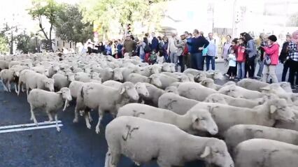 El recorrido ha terminado en la plaza de Cibeles donde ya se encontraba la alcaldesa, Manuela Carmena. La alcaldesa ha recibido el pago simbólico de los 50 maravedís al millar que era lo que estipulaba la Concordia de 1418 para que los animales pudieran atravesar la ciudad. La fiesta de Transhumancia nació para reivindicar la aprobación de una nueva Ley de Vías Pecuarias, que se promulgó el 23 de marzo de 1995. Video: Ruptly.