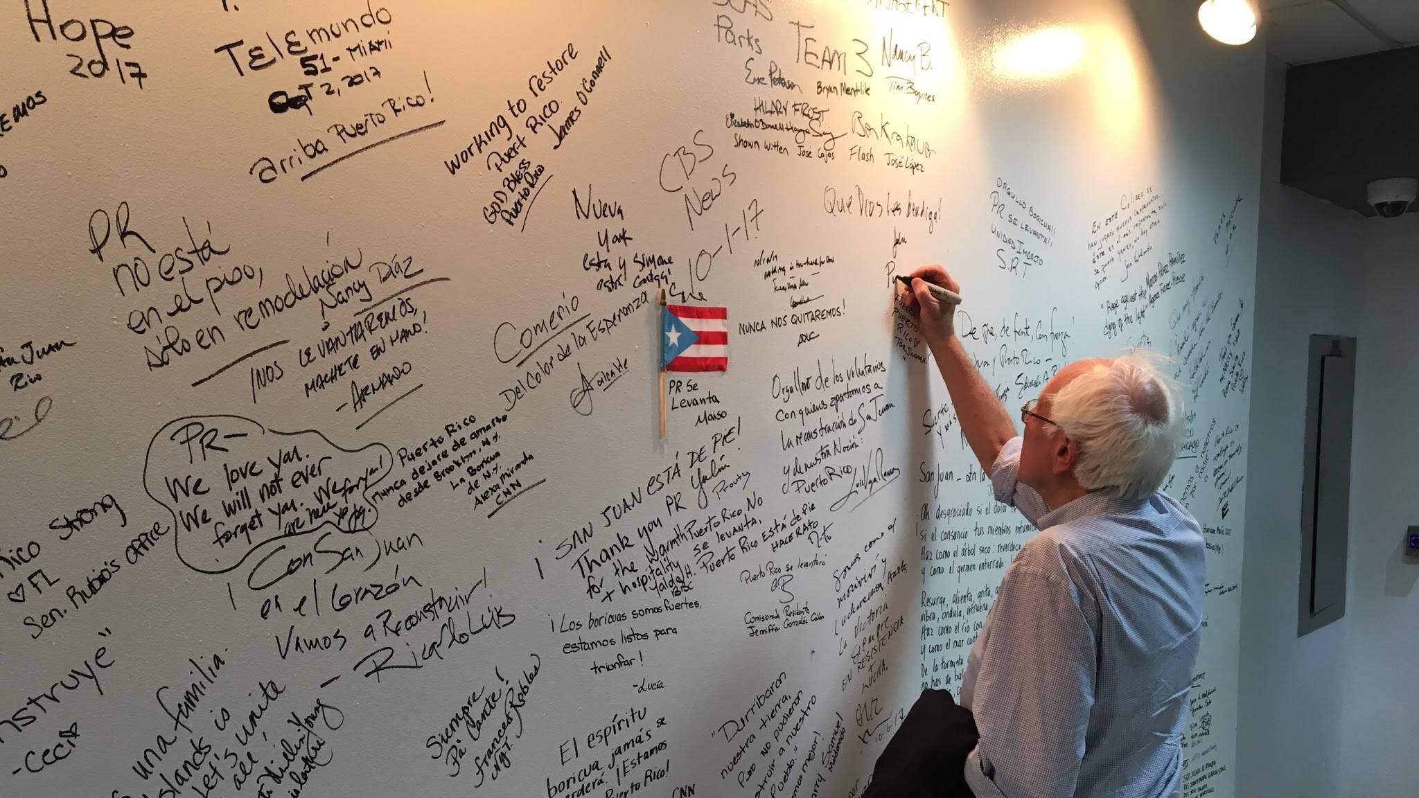 Pasó el mayor tiempo con la alcaldesa de San Juan, Carmen Yulín Cruz, aunque también intercambió expresiones con el gobernador Pedro Rosselló, quien se identifica con el Partido Demócrata en el que durante años militó Sanders. Temprano durante la semana, Sanders le confirmó a un reportero de Fox News que seguiría su carrera política como independiente.