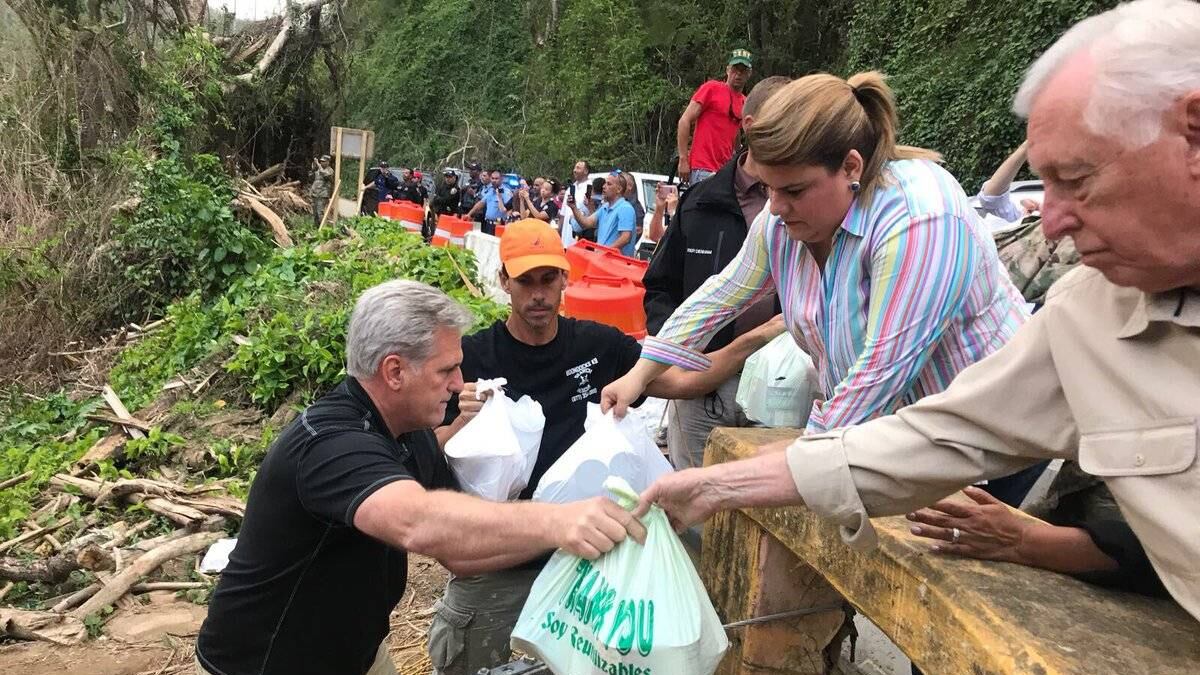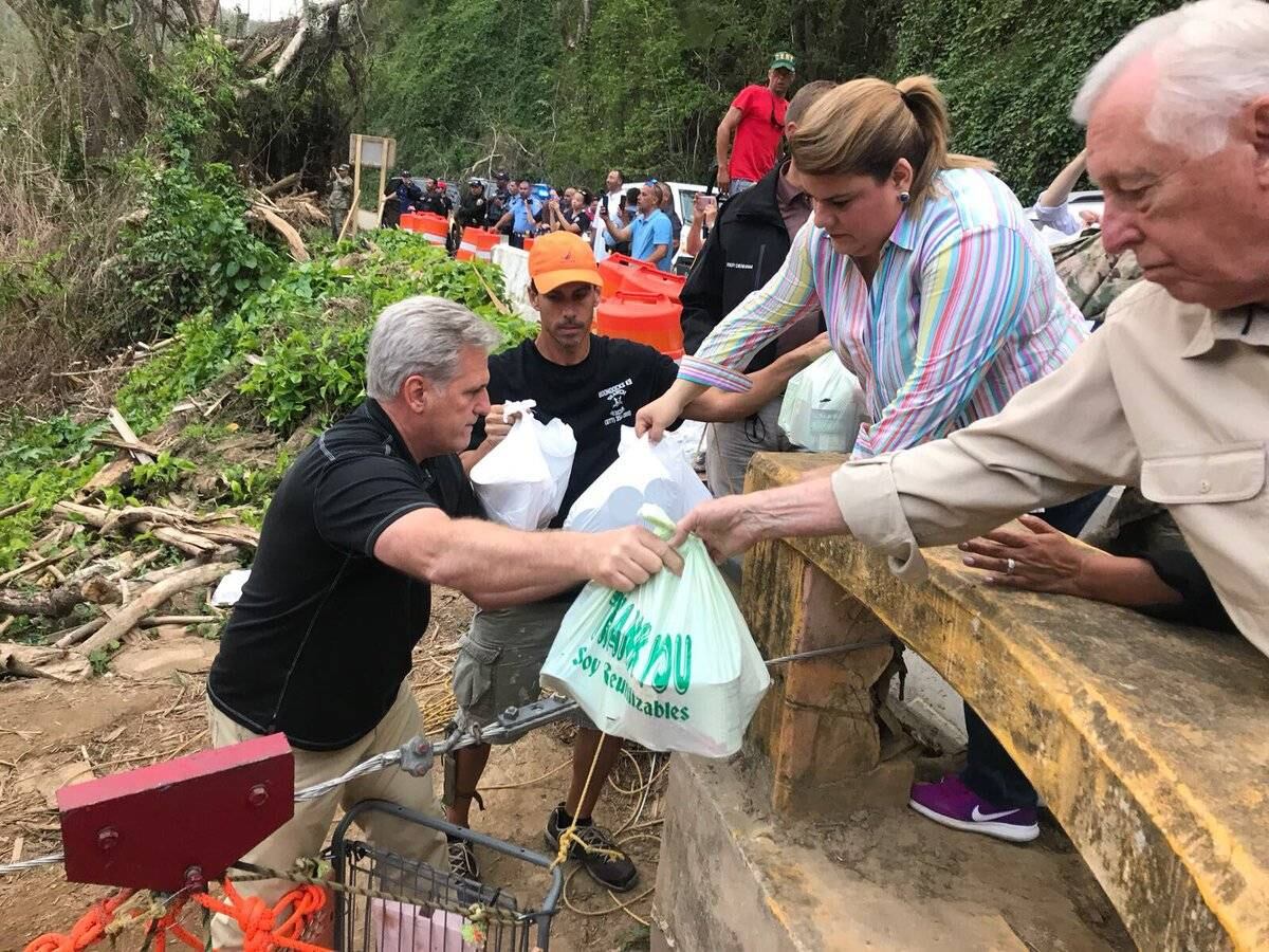 La comisionada residente en Washington, Jenniffer González, acudió el viernes a Utuado a llevar suministros junto a una delegación de congresistas que estaban de visita en la Isla.