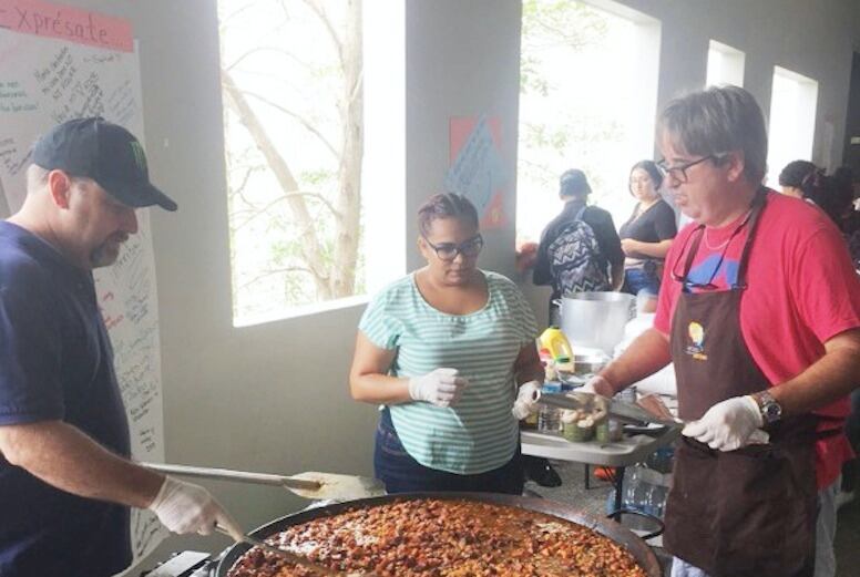 Al mediodía, más de 400 estudiantes y miembros de la comunidad universitaria disfrutaron de una paella preparada por reconocidos chefs de Puerto Rico, así como por profesores y estudiantes de la Escuela de Administración de Hoteles de la UPR Carolina.