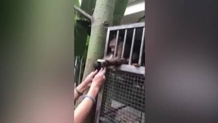 El video fue filmado el pasado 15 de octubre en el Jardín Tropical de Fauna y Flora de Hainan en Haikou, provincia de Hainan. Según informes locales, los monos intentaron agarrar el teléfono móvil de la mujer cuando intentaba tomarles una fotografía.
