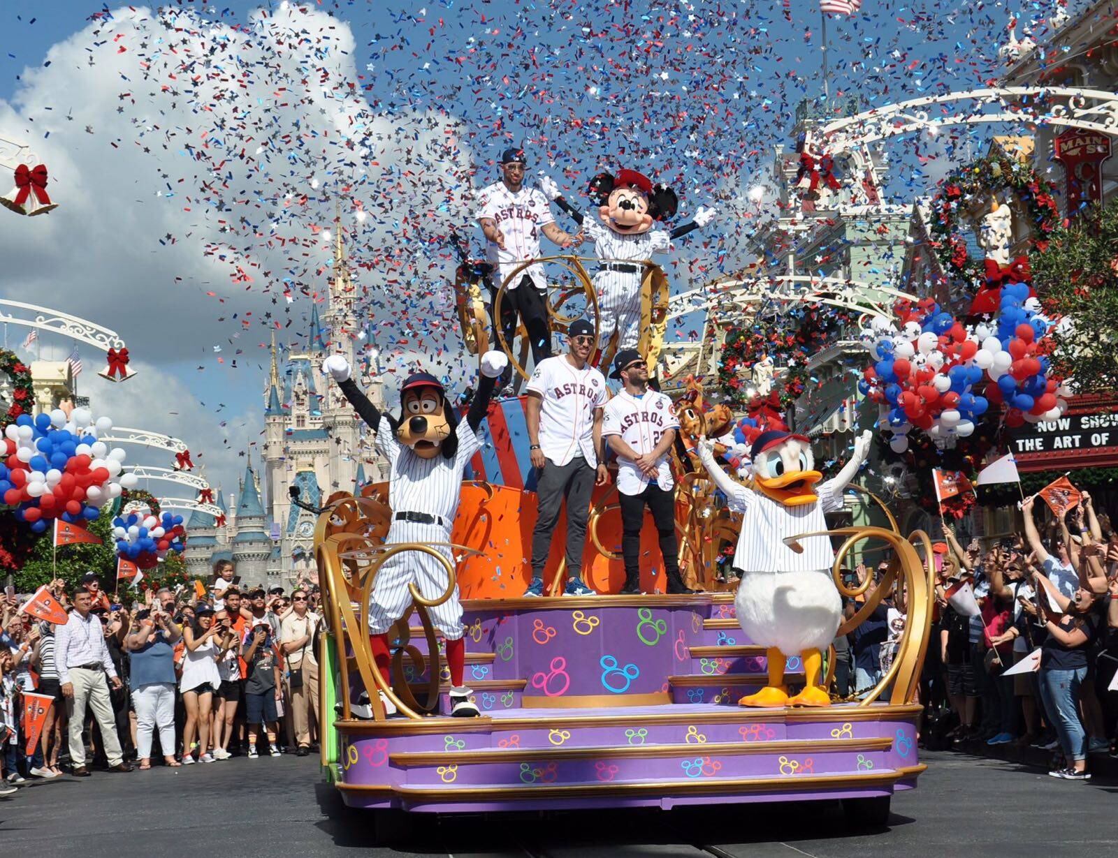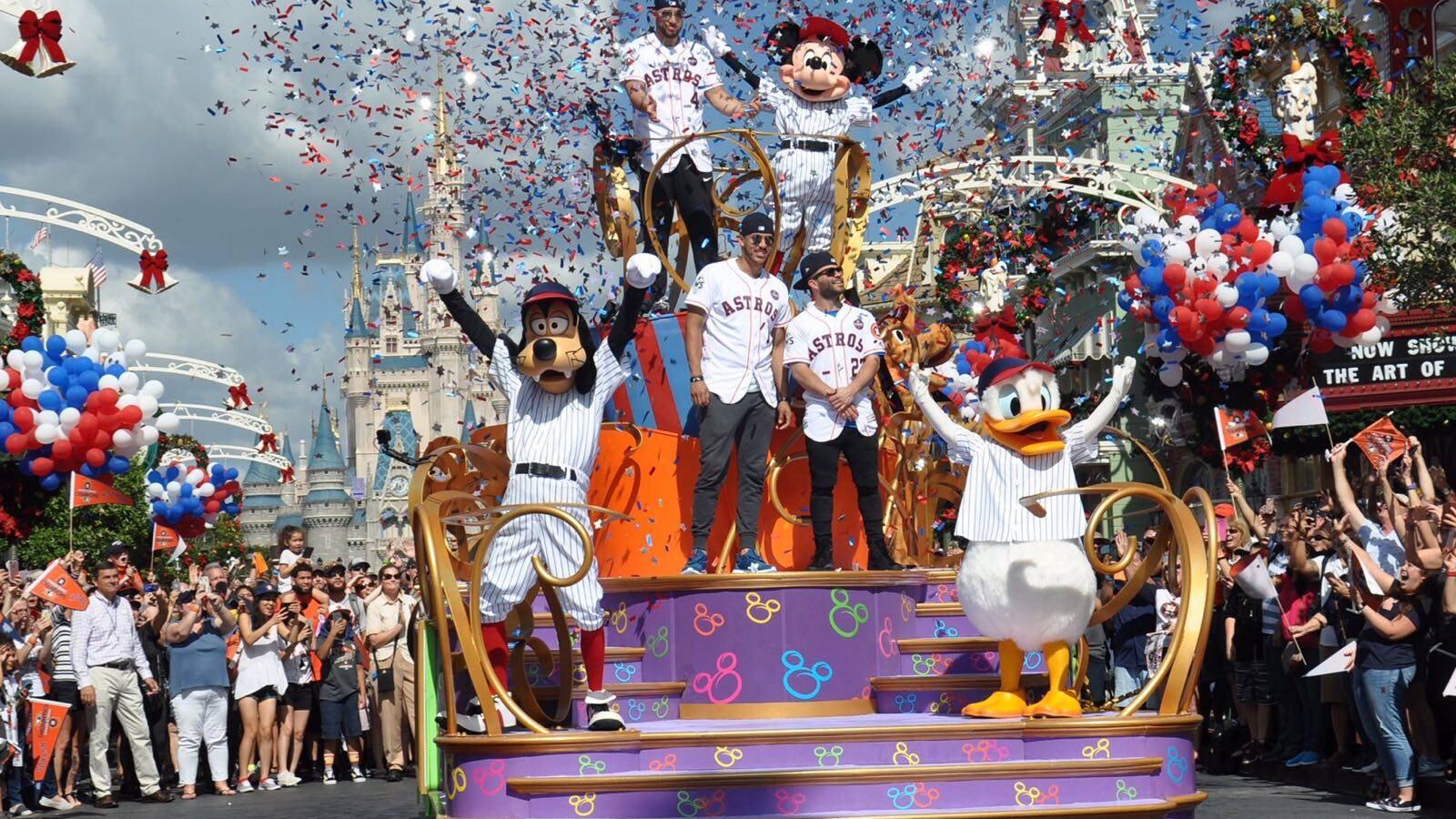 Tras celebrar por todo lo alto en la ciudad cede del equipo en el estado de Texas, Estados Unidos, el equipo emprendió su viaje a Disney World en donde fueron recibidos como héroes por miles de fanáticos y se le rindió homenaje al ganador del premio de Jugador Más Valioso, George Springer, al campocorto Carlos Correa y a José Altuve.