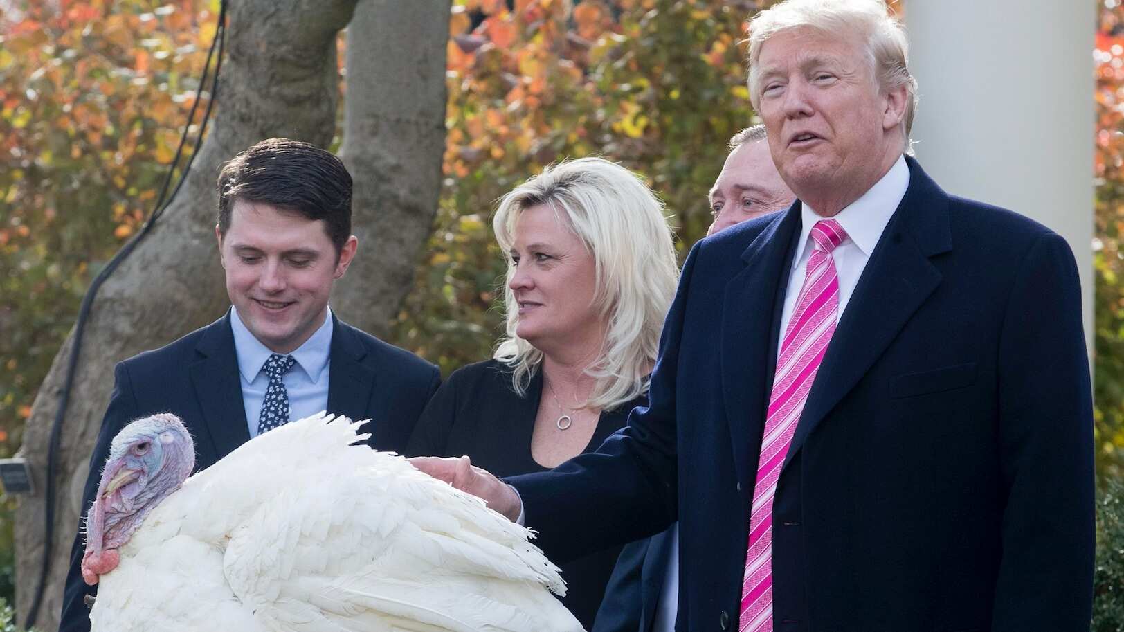El presidente, Donald Trump, cumplió hoy con la tradición de indultar a dos pavos que se salvarán de ser degustados en Acción de Gracias, antes de partir hacia su club de Palm Beach (Florida) para celebrar allí en familia esta festividad, la más popular del país.