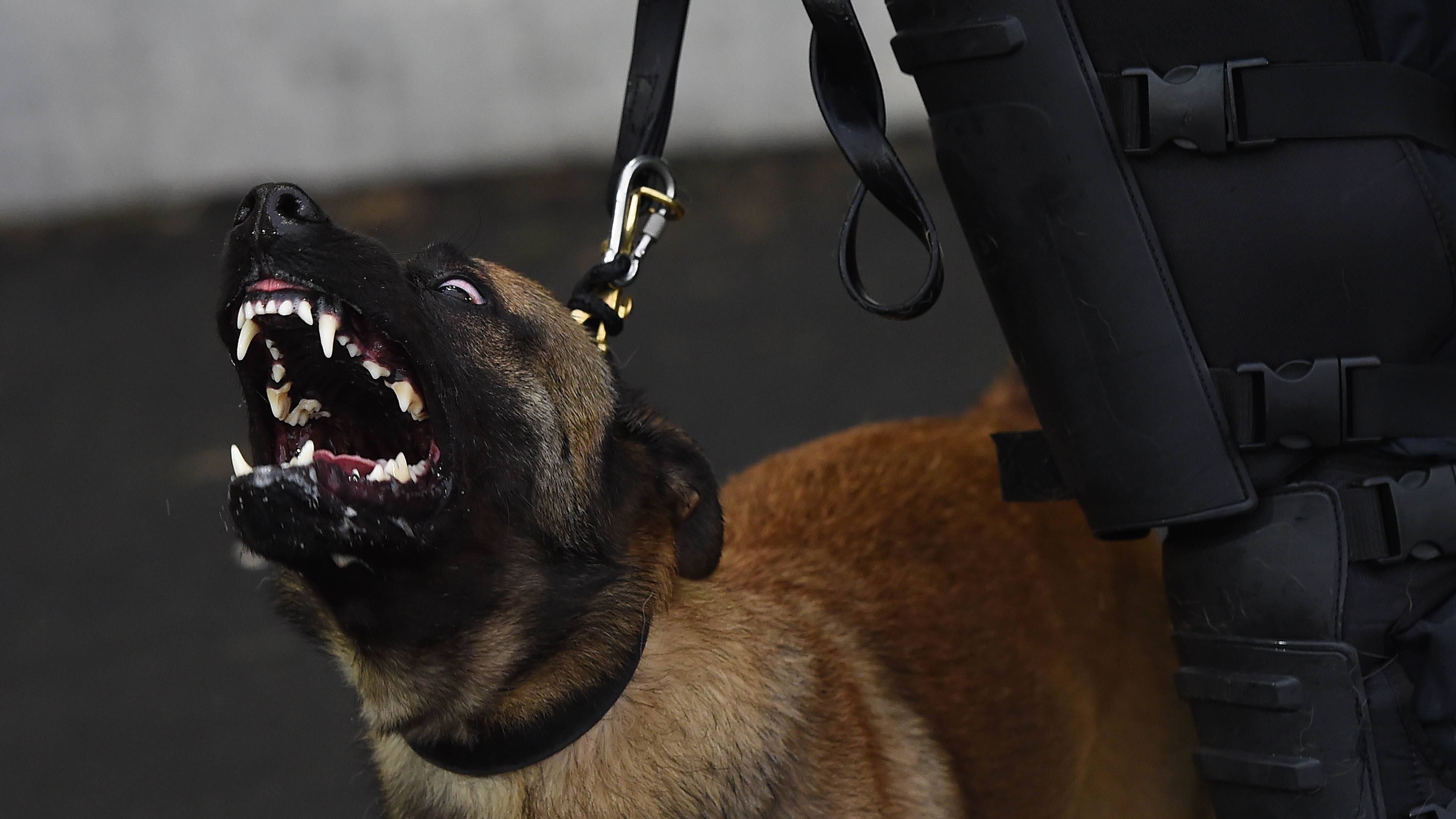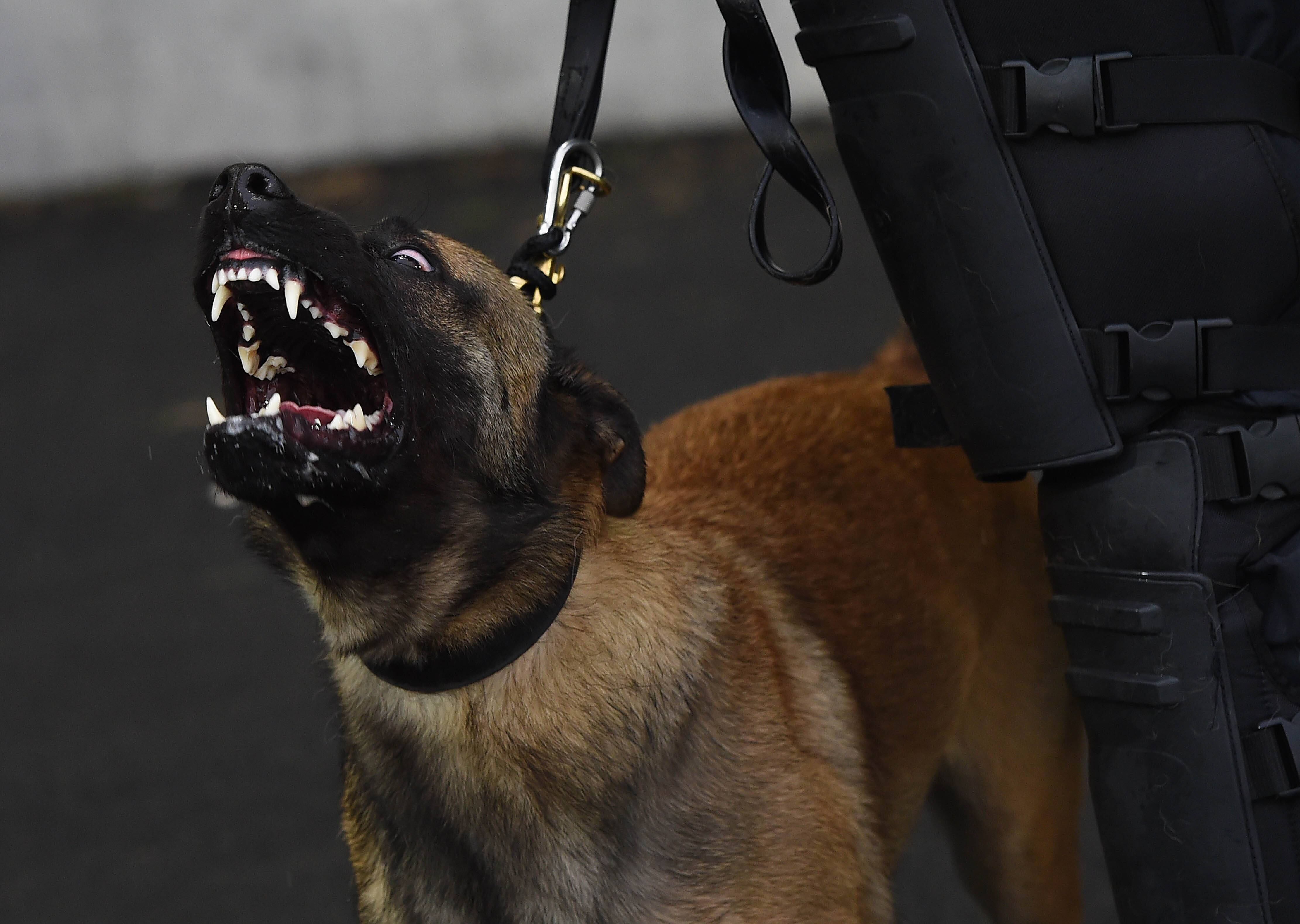 Los policías llevaban al canino con una correa bastante larga, que le permitió llegar hasta la mujer sin que pudieran evitar la mordida.