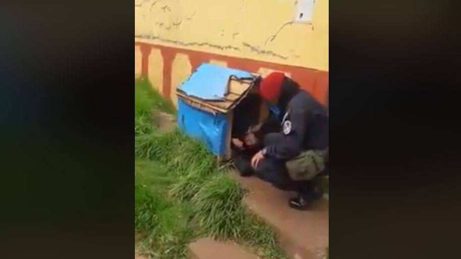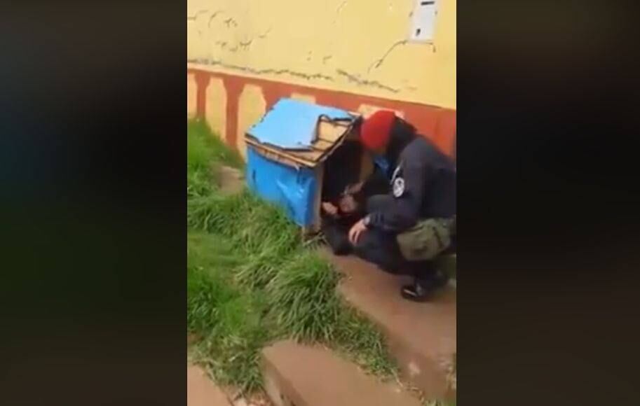 En el video que circula en Facebook , se ve a un policía revisando los signos vitales del joven y luego intentado despertarlo: “¿Qué haces en la casa del perro? Estás ocupando su domicilio”.