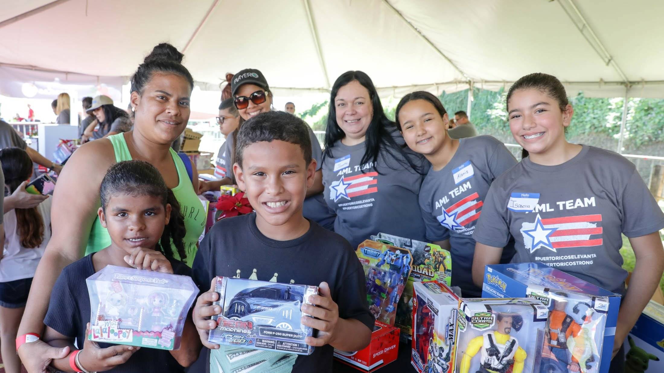 Además, un centenar de asociados de la empresa Amgen distribuyeron unos 3,500 juguetes para infantes y niños, como juegos de mesa, muñecas, carros de control remoto, patinetas, equipo para realizar manualidades y cajas de herramientas, entre otros.
