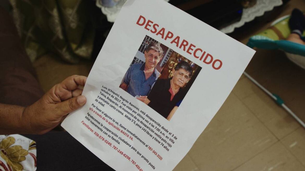 El CPI encontró casos en que ni siquiera las gestiones mínimas se hicieron. Entre ellos el de Luis “Chiquín” Negrón Ramírez, quien desapareció el pasado 3 de octubre tras salir de su casa temprano en la mañana en el área de Villa Taína en Cabo Rojo. Chiquín, carpintero de 74 años, gozaba de buena salud y de buen humor, pero antes del huracán había comenzado a mostrar algunas señales de comienzos de posible demencia con olvidos cotidianos. Tenía órdenes médicas de hacerse pruebas la misma semana que el huracán categoría 4 azotó Puerto Rico, relató al CPI su esposa, Ivette Andújar Torres.