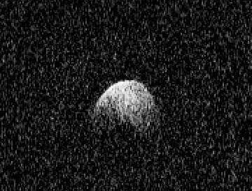 “La zona oscura (en el centro) podría ser un cráter o una depresión que no refleja las señales de radar de vuelta a la Tierra”, señaló Patrick Taylor, científico a cargo del grupo de observaciones del radar planetario en el Observatorio de Arecibo. Se estima que el aparente cráter, ubicado cerca de su zona ecuatorial, debe ser de al menos varios cientos de metros de diámetro.