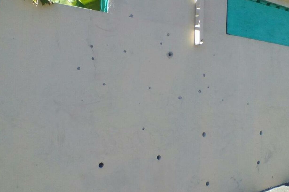 En los visuales se puede apreciar los rotos a consecuencia de las balas que impactaron una estructura en cemento.