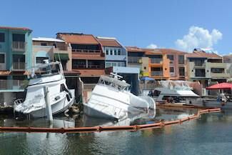 Equipos de la Guardia Costera se encuentran trabajando con embarcaciones impactadas por el huracán María en Palmas del Mar, Humacao.