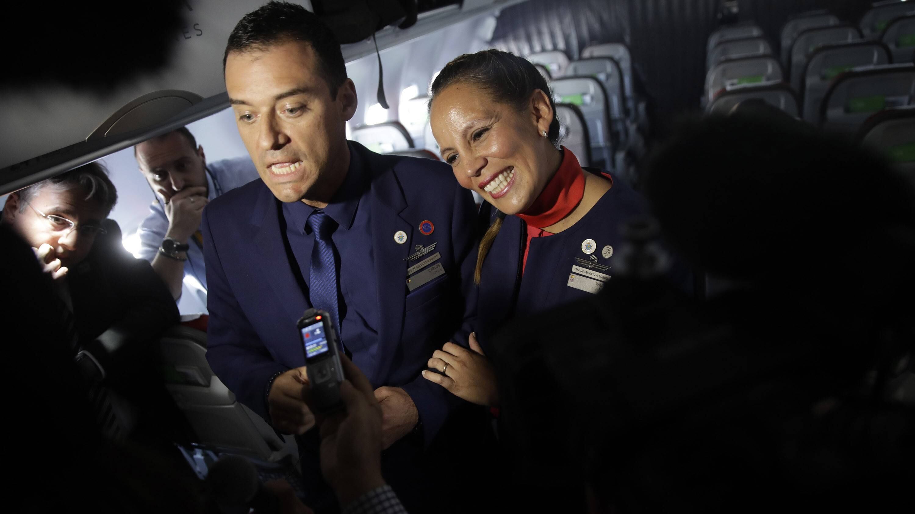 “Se inició una ceremonia pequeña en el lugar, nos pidió las argollas y nos preguntó si había amor en nuestro matrimonio, si queríamos seguir juntos toda la vida”, contó Carlos Ciuffardi, tripulante de cabina y flamante esposo de Paula Podest, jefa de cabina.
