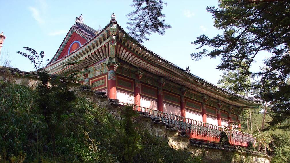 El templo principal de la Orden Jogye del Budismo Coreano está situado en un denso bosque en el valle oriental de la Montaña Odaesan. Fue fundada en 643 por el monje Silla Jajang. El templo tiene nueve elementos del patrimonio cultural designado por el estado: cuatro Tesoros Nacionales, incluyendo la Pagoda de Piedra Octagonal de Nueve Historias, y otros cinco tesoros designados incluyendo un Bodhisattva de Piedra Sentado. Frente al mismo, hay un río Geumgang-yeon con truchas manchurianas nadando en él.