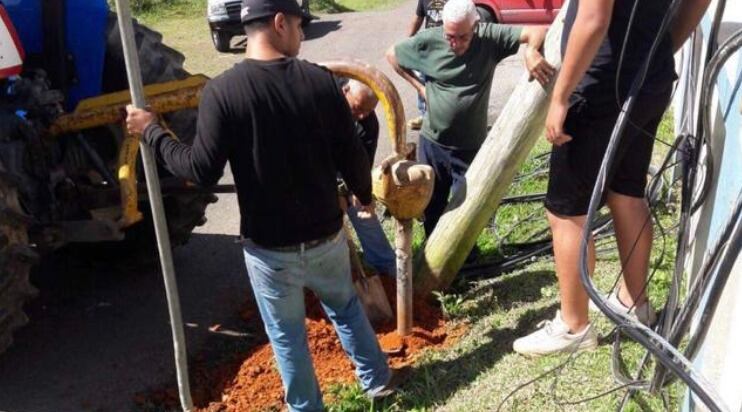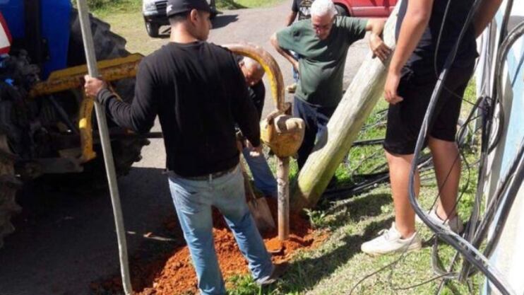 Cincuenta personas se presentaron y no tardaron en ponerse manos a la obra. A finales de enero, un grupo de vecinos colocó un poste de madera de 136 kilos (300 libras) sobre dos troncos y lo deslizó hasta un hoyo recién abierto de metro y medio (cinco pies) de profundidad.