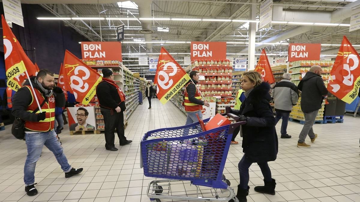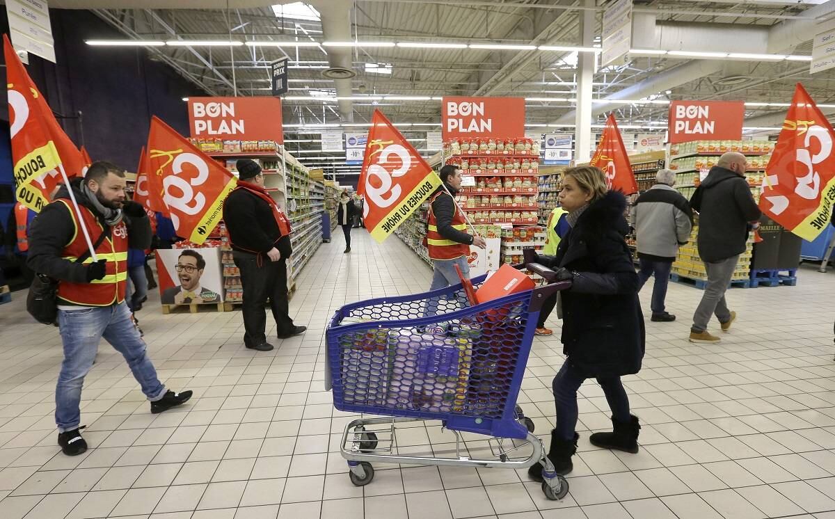 En Aix-en-Provence, en el sur del país, los trabajadores marcharon por los pasillos portando banderas rojas mientras los clientes efectuaban sus compras. Los sindicatos han programado varias protestas alrededor del país.