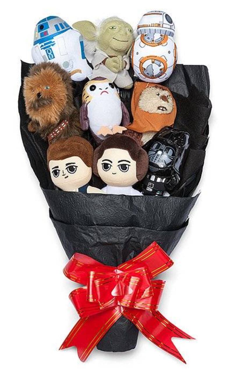 Este es uno de los regalos más geeks y románticos que encontrarás este día de San Valentín. Es un increíble ramo de Star Wars compuesto por pequeñas y originales figuras de BB-8, Chewbacca, Darth Vader, Han Solo, Leia, R2-D2, Wicket, Yoda y un Porg. Presenta tanto a los buenos como a los malos para aquellos que están del lado de la fuerza o del lado oscuro.