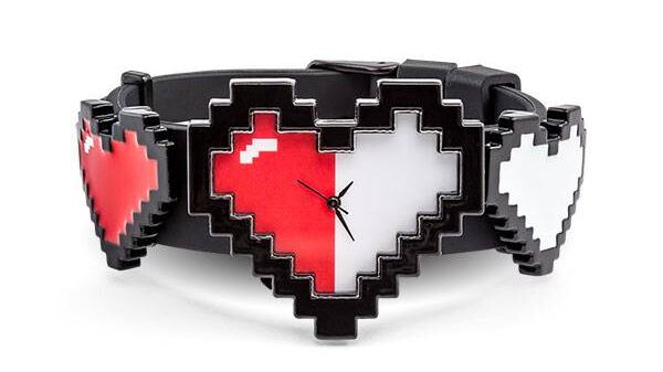 Los relojes nunca pasan de moda y pueden ser un excelente regalo para nuestras parejas, pero ¿qué tal si le agregamos un toque geek? Bueno, hay un reloj exclusivo de ThinkGeek, con el estilo de un medidor de salud retro de videojuego, con tres corazones de metal de 8 bits inspirados, que pueden reposicionarse a lo largo de la pulsera y rodean el corazón más grande de la esfera del reloj.