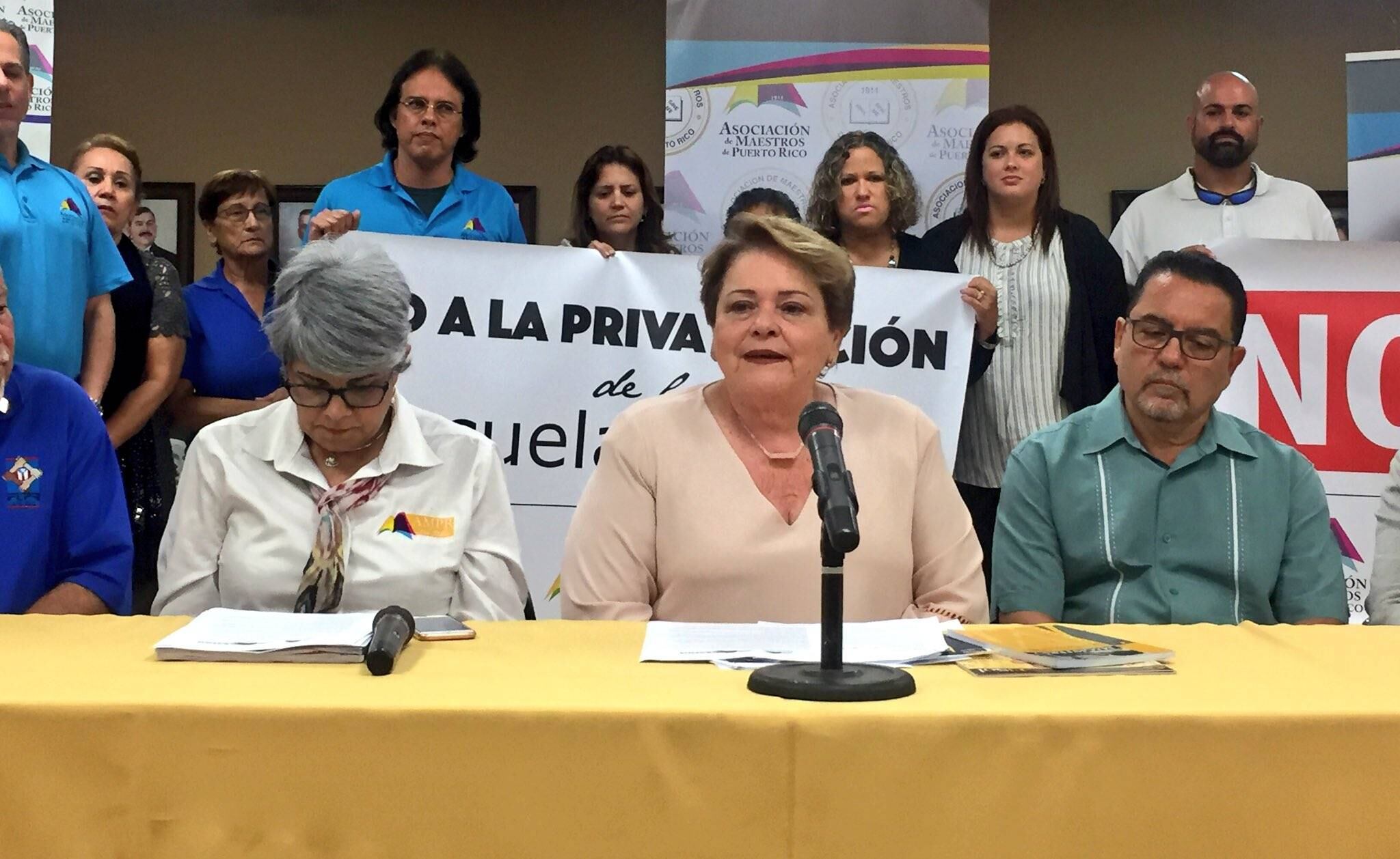 En conferencia de prensa, la presidenta de la AMPR, junto a un grupo de líderes sindicales, anunció el plan de acción que tomarán ante el anuncio del gobernador Ricardo Rosselló de una reforma educativa que aborda las escuelas chárteres, escuelas magnetos y vales educativos para los estudiantes.