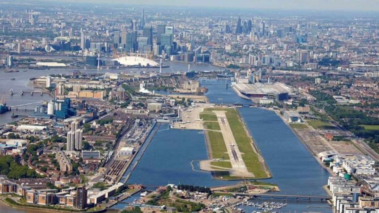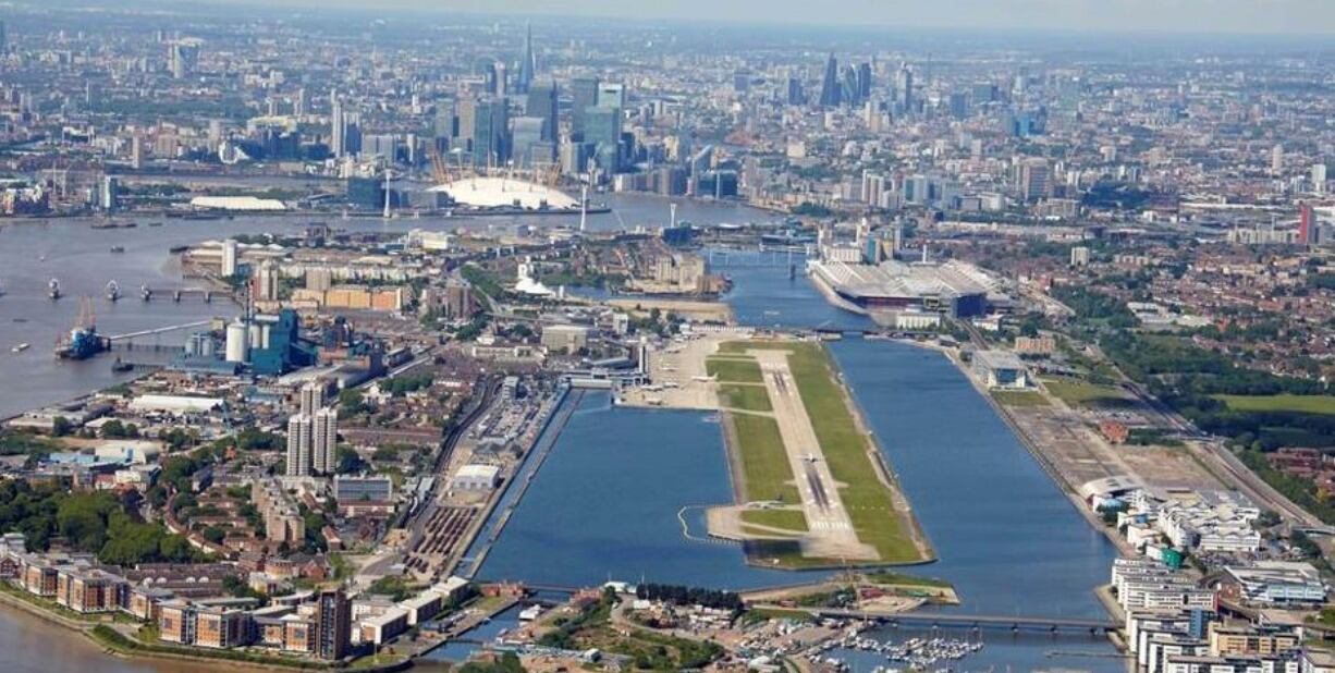 London City, el más pequeño de los aeropuertos internacionales de Londres, manejó 4,5 millones de pasajeros el año pasado. Se encuentra en los muelles del este de Londres, un área que fue fuertemente bombardeada durante la Segunda Guerra Mundial.