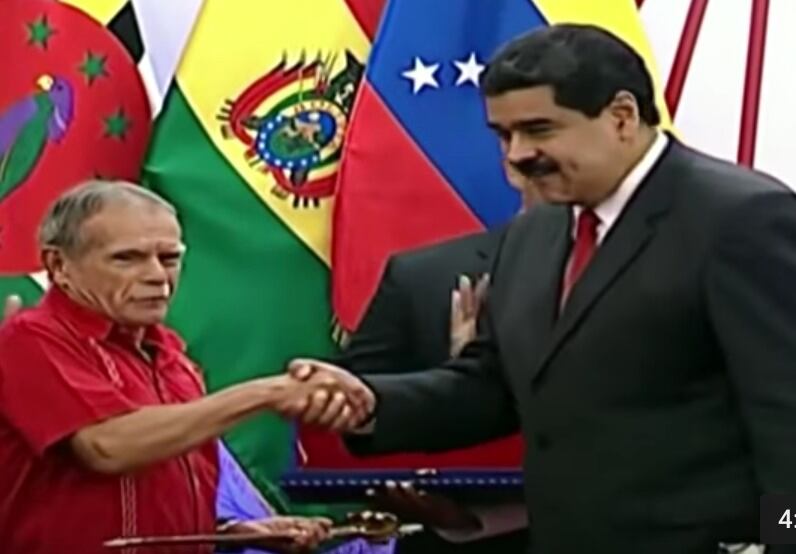 El presidente de Venezuela Nicolás Maduro entregó una replica de la espada del libertador Simón Bolívar al expreso político boricua Óscar López durante la XV Cumbre del ALBA-TCP.
